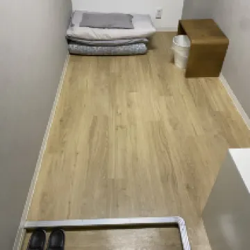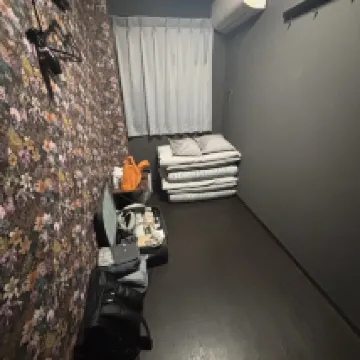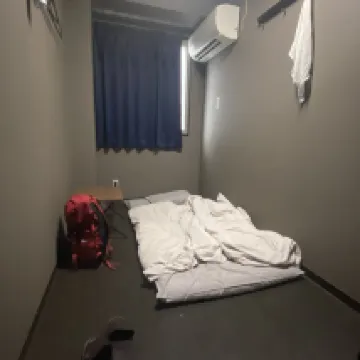 This hotel offers great value for its price and location. The room was small but comfortable, and the cleanliness was good. The lobby on the first floor has a fantastic atmosphere with two large tables perfect for dining or chatting, and a fully equipped kitchen. They also provide free hot water and coffee downstairs. Showering is convenient; you can use the single private shower room on the first floor (I never had to wait). I also tried the hotel's public bath, which was very relaxing. The bathhouse has three showerheads and a soaking tub, and it was never crowded (the women's bath is in the adjacent hotel, connected by a corridor, and staff provide a map upon check-in). Just about 100 meters away, there's a Tamade supermarket where you can find discounted food items in the evenings, which is quite cheap.