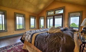 Rent these 5 bed and 3 bath homes weekly or monthly for your vacation. Houses sits on top of a hill and has breath taking views on more than 100 acres of land, amazing sunrises from the master suite and sunsets from the great room. Home has octagon shape great room with open timber frame ceilings and a large open fireplace. Do your grilling indoors with the indoor grill. Large 7 person jacuzzi tub outside the master bedroom. Master bedroom has king size bed with open vaulted ceilings. Interior painting was done by an artist. Radiant heated floors. Parts of the home has central air, remember this is central New York and air conditioning is not really needed. These homes is truly a one of a kind vacation home due to its 50 mile plus mountain views in almost the 360 degree. There are great sledding hills for the kids. Leather sectional couch and swivel chairs with power recliners and USB plugs on side of couch in great room. Love seat, futon couch and chair in studio.