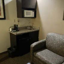 A very lovely stay. Huge clean rooms with large and comfortable king bed, separate living room area, microwave and coffee machine in the room. There is a 24hour tea coffee making station at the lobby as well with takeaway paper cups. Breakfast was simple but good, including waffles, bagels, toasts, eggs, sausages, cereal, yogurt, sauces and spread. Hot drinks and juices were served.
