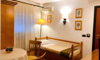 Ho preso una stanza singola per una notte per un ospite per lavoro. Il sopralluogo della stanza mi ha mostrato un arredamento non proprio recentissimo, la finestra si affaccia verso la parte interna di un palazzo e purtoppo il vetro di un tavolo era fratturato (ma non pericoloso). Il personale molto disponibile. Al check out il mio ospite ha lamentato di non aver potuto chiudere occhio poiché al piano superiore qualcuno ha camminato con tacchi e spostato mobilia per tutta la notte!! Alla reception dispiaciuti (con modi molto garbati) ci hanno detto che al piano superiore c'è una struttura per anziani e purtroppo può capitare. Avrebbero fatto presente. (magra consolazione) La posizione è ottima.