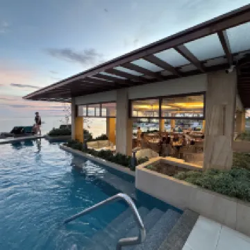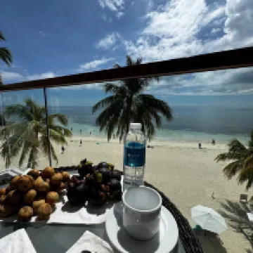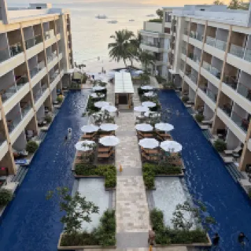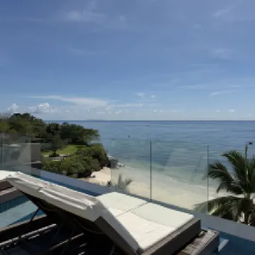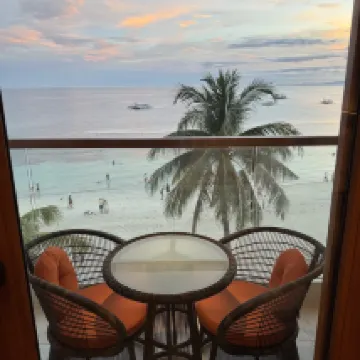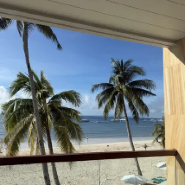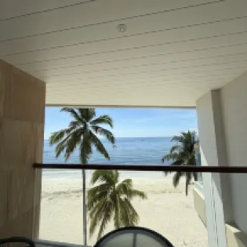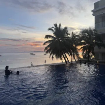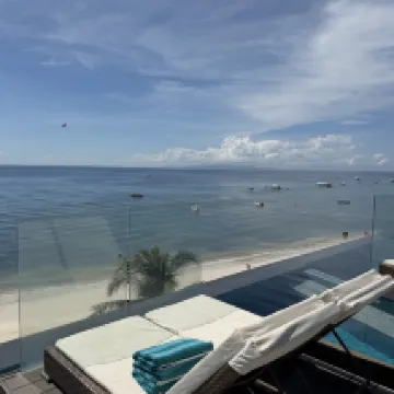 Great hotel right on Alona beach, far enough away from the noise but close enough to walk to the restaurants and bars. Stayed in a beach view room, was large and clean with the best beach view of any hotel I’ve stayed in. The sky infinity pool felt like the pool joined to the ocean. Also one of the best rooftop pools of any hotel I’ve stayed in and with the attached pool bar a great place to enjoy a cocktail or beer in the pool while watching the sunset. Staff were really friendly and helpful. Only areas of note that could be improved, the bath towels were of lower quality than I would have expected in a hotel of this level and the coffee at breakfast was terrible, luckily the room had a Nespresso machine.