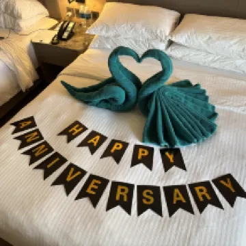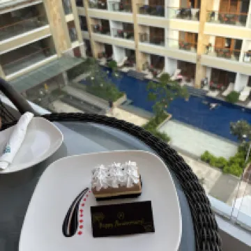 We came for a week to celebrate our wedding anniversary, and it was really great. The hotel is new and beautiful, very well taken care of. The staff is super friendly and helpful, breakfast is delicious and plentiful. On our wedding day the staff prepared a surprise decoration in our room and gave us a complimentary desert!