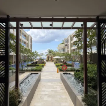 Lots of shops nearby, which is convenient. The environment is beautiful, the service is excellent, and the beach is quite popular. The rooftop infinity pool offers stunning views and is large enough for a good swim. This is a quality hotel, highly recommended for families or friends.