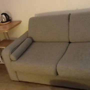 Nice hotel. Quite far from the tourist district but easily accessible by Metro. Main bed was comfy but sofa bed wasn't as good. AC was very welcome because of the heatwave when we were there. All staff were great but the young female at the front desk was fantastic - extra friendly and helpful - patiently answered many of our questions and gave recommendations of amenities near the hotel. Area north across the main road was sketchy and I wouldn't recommend being out alone late at night, but the hotel was right by the Metro stop and we never felt unsafe. Would definitely stay here again.