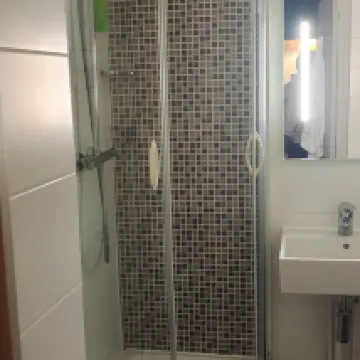 We arrived very late and left very early as we were between trains and needed a place very near the train station. The hotel is 5 minutes walking from the train station so it’s great. We know it’s a cheap hotel and it’s good just for 1 quick night, I won’t stay there longer. The bathroom is tiny, I don’t think thicker people can even fit in it. The room is very old but there is AC and it’s quite clean and the bed were very comfortable. We still paid like 100€ which I think it’s way too expensive for this kind of hotel, 60 or 80€ would be more appropriate for the quality of this place. Everything is old and tiny.