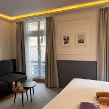 Response from Property: Dear Guest,Thank you for your nice feedback and I am glad to hear you enjoyed the great location close to the Galeries Lafayette and Gare du Nord !The neighborhood is very safe and you will find such a great selection of restaurants.I would recommend the Deluxe room for a larger space and a separate shower.We hope to see you again!Best regards,Kiran Hotel Manager