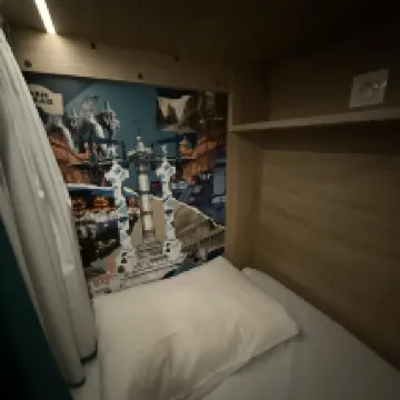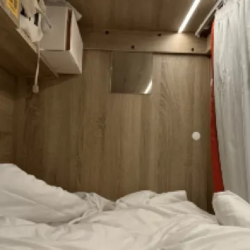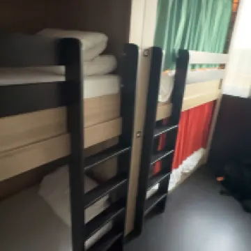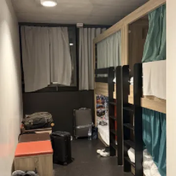 Beds are comfy. I’m 171 cm and it was enough space for me. Beds are packed with curtains, shelve and socket. There’s one bathroom per room, but there’re more in each floor. Hotel cafes about environment, but it has only one small recycling bin in the lobby. Cmon, add at least one bin to the kitchen. Otherwise, it looks like pretending being nature-careful.