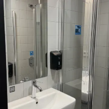 Great location and nice service. The bathroom design is a bit annoying but overall it is acceptable. However it would be better if there are some shelfs or hangers to put personal items when showering.