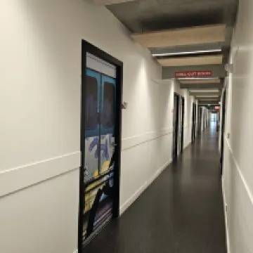 Showers: The communal shower on the fourth floor feels more spacious, has a larger showerhead, and hooks, compared to the one in the room.