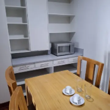 Wide space, but very few amenities. No toothbrush, no bath soap. Plates, spoon and fork you can use is a little bit dirty. But the location and service is good.