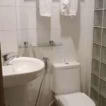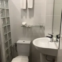 The toilet and shower area were a bit small, but there was hot water, and the water pressure was excellent, taking showers very pleasant. Housekeeping cleaned the room daily and changed the towels, and the staff were friendly and helpful.