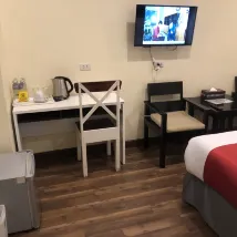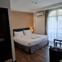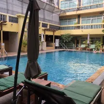 The hotel has a pool—quite large and deep—with water that’s not overly chlorinated, which was great for me since I have sensitive eyes. The room was spacious, neat, and clean. The air conditioner worked perfectly and cooled the room quickly after being turned on.