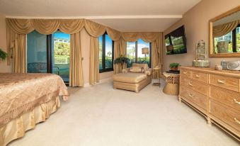 1 MASTER KING SUITE Bedroom with 2 private Bathrooms and Jacuzzi ensuite. Chase Lounge sitting area.TV, Mini Waterfall and music cd radio.