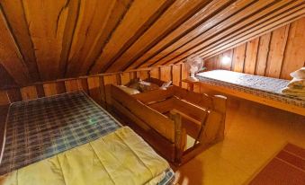 Sleeping facilities: two beds (80x200 cm) on the loft and two additional beds on the upper bed of the bunk bed (80x200 cm) downstairs. The loft is accessed via steep stairs. Keidaskero B 9 is located right next to the ski slopes, allowing direct access to the slopes. The nearest ski lift is PyhäExpress. The Nature Center Naava and Cafe Loimu are within walking distance. The nearest ski trail is about 200 meters away; there are a total of 150 km of ski trails in the Pyhä-Luosto area.
