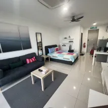 I only booked an apartment for one night to give it a try. I was a bit surprised when I arrived. The price/performance ratio is quite high, the hygiene is very good, and the scenery outside the window is also very good. There are two restaurants downstairs where you can eat, one is a Japanese set meal. One is a Korean BBQ, there is also a mom's stall to solve the problem of eating, and there is a good Japanese small supermarket. There are no other businesses. The bad thing is that you have to take a taxi one or two kilometers away to buy things. I stayed for four consecutive nights, but changed three room types in the middle. Because the room type I stayed in for the first night was already booked by someone, I was forced to change to other room types. The next two nights I stayed in a double room with a sofa🛋️ The bed, the house is smaller, and the hygiene is not as good as the large room and duplex where I stayed for the previous two nights. The curtains are black and quite dirty, and the quality of the mattresses could be improved, but it would be better. Overall it is good!