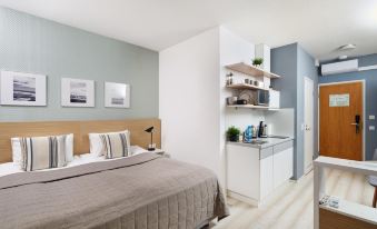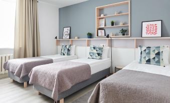 Отель понравился. Оформление отеля - супер! По номеру: чисто, аккуратно, матрас/кровать/подушки удобные, звукоизоляция хорошая (не слышно было ни соседей, ни улицы, хотя первый этаж, окно выходит на тротуар и проезжую улицу), белье и полотенца белейшие, мягкие и приятные к телу, гигиенические принадлежности есть. Зашторить окно можно и светонепроницаемыми шторами, и жалюзи. В номере, рядом с дверью, очень уж не хватает банкетки, или стула, или пуфа, чтобы можно было присесть для того, чтобы снять-надеть обувь. Также не мешала бы там и открытая небольшая вешалка для верхней одежды. Буквально пара-тройка крючков (и плечики на них разместить), чтобы не проходить к шкафу в уличной обуви. (Обычно человек сначала снимает верхнюю одежду, потом обувь, а одевается в обратном порядке.) Дизайн приятный. Как и цветовые решения. Лаконично, со вкусом. Но санузел не очень визуально приятен в таком оформлении (белая небольшая плитка). Нам он напомнил советские больницы. Ну, это такое субъективное восприятие. Когда заселились в номер, батареи были холодные. В номере было сильно прохладно. В санузле полотенцесушитель тоже был холодный. И тоже было холодно. И нигде мы не нашли, как бы самим включить/отрегулировать батареи и полотенцесушитель. Мы не очень долго были в номере, ушли гулять по городу. И когда пришли вечером – О, чудо! – и в номере, и в санузле было тепло, батареи теплые. Может, все это включают где-то на «спец.пульте», чтобы не тратить теплоэнергию, пока номер не заселен. В номере есть информационные буклеты. Я всегда читаю в гостиницах информационные буклеты. Иногда бывает что-то полезное или интересное. Так и здесь интересное: «Вечерний чай с выпечкой». Спросили на ресепшн, что это и как. Там, где по утрам завтракают, вечером выставляется выпечка, люди приходят из своих номеров, пьют чай, едят выпечку, общаются друг с другом. Нам не пришлось пообщаться с другими постояльцами, так как мы были в это время в театре. Чай, кстати, есть и в самих номерах. Чайники, чайные наборы, чайные пакетики. Вода в коридоре в кулере. Завтрак хороший. То ли мы пришли на него поздно, то ли посетителей было мало, мы завтракали одни. Все в наличии было: каша, омлет, сосиски, колбасно-сырно-мясная нарезка и проч. Кофе можно было сделать в кофейном аппарате. Кстати, когда мы оформлялись, дело было после обеда, завтраки уже закончились, двое постояльцев пришли к кофейному аппарату, сделали себе кофе и пошли в номера. Видимо, не возбраняется пользоваться и, так сказать, во внеурочное время, что в плюс отелю. Еще, исходя из информации в номере, прокат велосипедов и самокатов бесплатен, как и выдача зонтов в случае дождя. Расположен удобно по отношению ко всем достопримечательностям. Персонал вежлив и доброжелателен. При входе есть камеры хранения для багажа.
