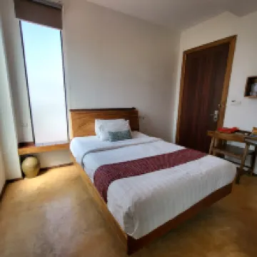 I booked this gem of a hotel for my last night in Cambodia (to be close to the airport) and was extremely happy with the accommodations. The photos are exactly as shown but don't give the hotel enough justice. The staff was very pleasant and very helpful from check-in, getting a tuktok and check out. The room was super cool, modern, extremely comfortable and clean. The lobby and restaurant also had a great vibe. The free breakfast was delicious and served in a lovely location. The price was also excellent!