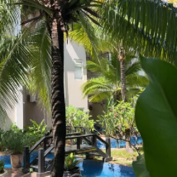 It’s a nice hotel. Green trees, nice swimming pool, nice food….