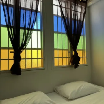 This hostel is located right on Phuket Old Town street, which is super convenient for shopping. The weekend night market is right downstairs. We were pretty happy when we first arrived; even though the room was small, it was very clean. However, what really drove us crazy was that once we were already asleep at night, many guests—we don't know what nationality they were—were incredibly loud and noisy, severely disturbing our sleep. No hotel staff came out to stop them, and the noise was just deafening! Plus, because all the hallways and rooms in this hostel have wooden floors, early in the morning, cleaning staff and other guests were constantly walking around, which really impacted our rest. We didn't sleep well at night and were forced to wake up early in the morning! Overall, we weren't very satisfied and hope they improve their management!