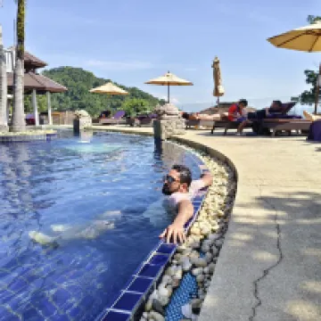 -The upper pool has an amazing view of the Thai islands. Make sure to get to the pool early (8-9am) and secure a chair or two if you plan to have a pool day.