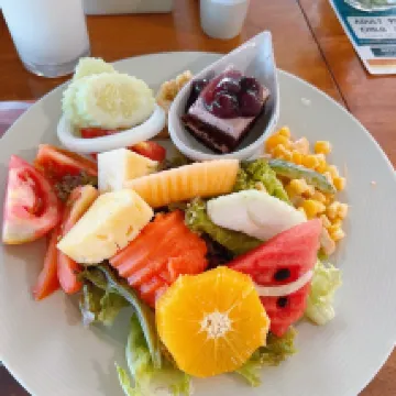【Breakfast】The hotel offers breakfast at three locations. The Bhuri, Thani, and Veli wings each have their own breakfast restaurants, and guests can choose any of them. The Bhuri wing's breakfast restaurant is by the sea and has a better view, but the food-serving area is small. The Thani wing's breakfast restaurant is in a lobby, with more space for food and seating. We preferred the Thani's breakfast restaurant. We didn't visit the Veli wing's. The food selection is the same at all locations.