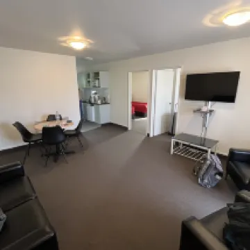 The room is spacious and clean. FreshChoice is just across the road, and there are many restaurants within walking distance.