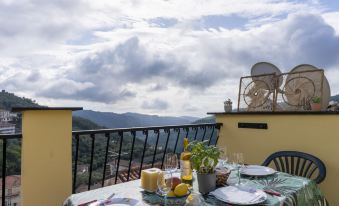 Cosy 2-family house, 3 storeys, renovated in 2022. 2 apartments in the property. In the centre of Pietrabruna 30 km from the centre of San Remo, 10 km from the centre of San Lorenzo al Mare, 15 km from the centre of Imperia Porto Maurizio, in a quiet, elevated position, 10 km from the sea, in a pedestrian area. 100 m stepped path to the house. Public parking 100 m. Grocery, bar, bakery 100 m, bicycle rental 10 km, bus stop 100 m, railway station "Imperia Oneglia" 15 km, sandy beach "San Lorenzo al Mare" 10 km, shingle beach 10 km, bathing lake "Laghetti" 5 km. Please note: car recommended. "Casa Alfonso", 4-room terraced house 150 m2 on 3 levels. Bright, tasteful and cosy furnishings: 1 double bedroom. Living/sleeping room with 1 double sofabed (1 x 160 cm), satellite TV. Kitchen-/living room (oven, dishwasher, 4 gas rings, toaster, kettle, freezer, electric coffee machine) with dining table. 2 showers/WC. Gas heating. On the lower ground floor: 1 double bedroom. Bath/bidet/WC. Upper floor: (spiral staircase) living room. Exit to the terrace. Parquet floors, natural stone floors. Terrace 12 m2. Very beautiful distant view of the sea and the countryside. Facilities: washing machine. Internet (WiFi). IT008041C2EHUIQQCL