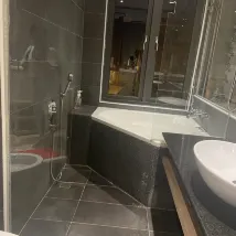The TV is huge!!! The bathtub is huge!!! It's special to see the sink outside. The only downside is that when I turn on the TV, all my accounts are logged out🤣🤣🤣 But it doesn't affect the experience~