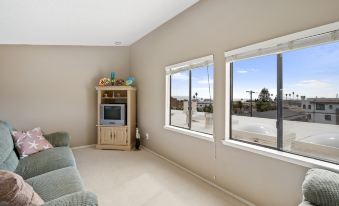358 Stimson is a condo in the heart of the action in Downtown Pismo Beach, a stone's throw from Restaurant Row where you can enjoy world-class cuisine and wine-tasting but is located in a quiet, secure building where you can escape from the hustle and bustle into a serene retreat all your own. Featuring two bedrooms one with a King bed and the other with a Queen bed, as well as flexible sleeping options in the living room (a Queen sleeper and a Twin sleeper) This property can accommodate up to 6 guests. Just off the living room is a private deck with Adirondack-style chairs, makes you feel like you're a world away from everything. Fully equipped galley style kitchen, perfect for a lazy Saturday morning breakfast before hitting the beach for the day. This property has two separate living areas making for a great option to separate for different activities. Send the kids up to the loft with some board games while the adults relax downstairs in the main living area, for example. Other amenities include gated parking for 2 vehicles, communal outdoor seating area, TV access via At&t app on smart TVs, and always-complimentary Wi-Fi access.