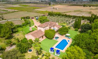 Very large, comfortable villa "La Forca", 2 storeys. Outside the resort, 1 km from the centre of Santa Margalida, in a quiet, sunny position, 11 km from the sea, in the countryside. Private: natural state property 14'000 m2 (fenced), large garden with lawn and trees, swimming pool (12 x 6 m, depth 100 - 180 cm, seasonal availability: 01.Jan. - 31.Dec.). Paddling pool, outdoor shower, table tennis, patio, arbour, pergola, garden furniture, barbecue, barbecue house, pool maintenance by the owner/gardener. In the house: internet access, WiFi, storage room for bicycles, air conditioning. Parking at the house on the premises. Supermarket 1.4 km, restaurant 1.2 km, bar 1.2 km, bakery 1.5 km, 20 minute walk to the centre, bus stop "Plaça de la Vila, Santa Margalid" 1.2 km, railway station "Muro" 8 km, ferry "Port d'Alcúdia" 18.2 km, sandy beach "Can Picafort" 11 km. Sports harbour 11 km, golf course (18 hole) 22 km, cycle lane 500 m. Nearby attractions: Can Picafort-Son Serra-Santa Margarita, Palma de Mallorca 53 km, Hidropark Aquatic Park 20 km, Mallorca Fashion Outlet % Cinemas 45 km. Hiking paths: Finca Pública Son Real, Parc Natural de Farrutx, S'Albufera de Mallorca. Please note: car recommended. Object suitable for 10 adults groups of teenagers on request only. Animals in the neighbourhood. Airfield 57 km from the property. "La Forca", 7-room villa 500 m2 on 2 levels. Object suitable for 10 adults. Spacious and bright, fully renovated, practical and beautiful furnishings: large living/dining room with dining table, satellite TV, digital TV, flat screen, air conditioning and forced-air heating. Exit to the patio, to the swimming pool. 1 large double bedroom with Dressing room with 2 beds (90 cm, length 200 cm), hand-basin, bath/shower/WC, air conditioning and forced-air heating. Exit to the patio, to the swimming pool. 1 large double bedroom with panoramic window with 2 beds (90 cm, length 200 cm), air conditioning and forced-air heating. Exit to the patio, to the swimming pool. Kitchen-/living room (oven, dishwasher, 3 ceramic glass hob hotplates, toaster, kettle, microwave, freezer, electric coffee machine, cooking island). Shower/WC, sep. WC. Upper floor: 2 large double bedrooms, each room with 2 beds (90 cm, length 200 cm), hand-basin, shower/WC, digital TV, flat screen, air conditioning and forced-air heating. 1 double bedroom with 2 beds (90 cm, length 200 cm), digital TV, flat screen, air conditioning and forced-air heating. Large balcony, large patio, porch. Terrace furniture, balcony furniture, barbecue, deck chairs, covered balcony. Panoramic view of the countryside and the resort. Facilities: washing machine, dryer, iron, children's high chair, baby cot for up to 2 year olds, hair dryer. Internet (WiFi, free). Parking at the house. Please note: non-smoking house. The pool mentioned in the description is for private use. ETV/11103 ESFCTU00000701100079486100000000000000000000ETV/11103