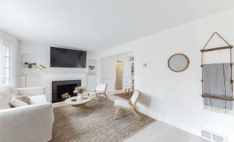 Step into a space where comfort meets modern elegance. As you enter, you’re greeted by a bright, spacious living room, thoughtfully designed with cozy seating and a wall-mounted smart TV—perfect for relaxing movie nights or unwinding after a day of exploring. Adjacent to the living area, the dining space flows effortlessly, complete with charming built-ins that add a touch of character and warmth.