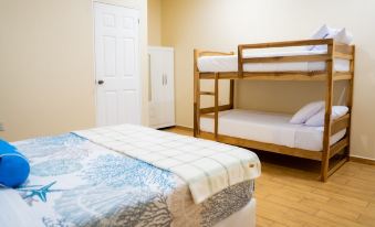 4 bedrooms: 2 bunk beds 1 single bed and 4 queen beds