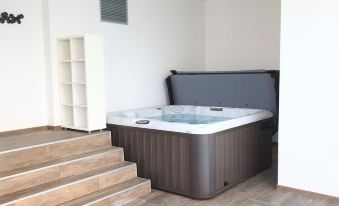 Does Villa with spa and large indoor pool, sea view, 50 metres from the beach have a swimming pool?