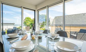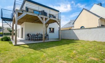 Modern, beautiful, comfortable single-family house "Les Dunes". 900 m from the centre of Plounéour-Trez, 2.5 km from the centre of Brignogan-Plages, 200 m from the sea, 200 m from the beach. Private: property 400 m2 with lawn and wildlife garden, parking (for 2 cars) on the premises. Shop 950 m, grocery 1 km, supermarket 5 km, restaurant 900 m, bakery 950 m, café 900 m, bus stop 260 m, sandy beach "Plage de Kerurus" 1 km, park "Baie de Goulven" 200 m, indoor swimming pool 13 km. Golf course (18 hole) 34 km, surf school 500 m, sailing school 4.5 km, walking paths from the house 150 m. Nearby attractions: Meneham, Kerlouan 6 km, Réserve ornithologique, Dunes de Keremma 6 km, Château de Kerjean 22 km, Roscoff, Jardin exotique, Île de Batz 35 km, Oceanopolis Brest 45 km, Morlaix 50 km. Hiking paths: GR34, sentier des douaniers 230 m. "Les Dunes", 4-room house 90 m2 on 2 levels. Bright, modern and tasteful furnishings: 2 rooms, each room with 1 french bed (140 cm, length 190 cm). Exit to the terrace. 1 room with 2 beds (90 cm, length 190 cm). Shower/WC, double hand-basin. Upper floor: living/dining room with dining table, bar, TV and flat screen. Exit to the balcony. Open kitchen (oven, dishwasher, 4 induction hot plates, toaster, kettle, microwave, freezer, electric coffee machine). Sep. WC. Electric heating. Large balcony 25 m2, south facing position and, east facing position, large terrace 70 m2. Terrace furniture, barbecue (portable), deck chairs (2), box-room. View of the sea. Facilities: washing machine, dryer, iron, children's high chair, baby cot. Internet (WiFi, free). Please note: non-smoking house. Smoke alarm.