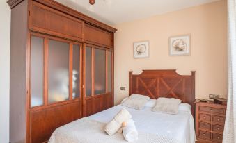Terraced house "El Puerto". In a quiet position, 300 m from the beach. In the house: central heating system. Supermarket 200 m, restaurant, bar, café 20 m, bus stop "Portosín" 150 m. Sports harbour 100 m. "El Puerto", 4-room apartment 125 m2 on 1st floor. Practical and comfortable furnishings: living/dining room with dining table, digital TV and flat screen. Exit to the balcony. 2 rooms, each room with 1 french bed (135 cm, length 190 cm). 1 room with 2 beds (90 cm, length 190 cm). Kitchen (oven, 4 ceramic glass hob hotplates, toaster, kettle, microwave, freezer, electric coffee machine). Bath/WC. Heating. Balcony. Beautiful view of the sea. Facilities: washing machine, iron, hair dryer. Internet (WiFi, free). Parking (fenced) at the house. Please note: non-smokers only. Maximum 1 pet/ dog allowed. R000000001