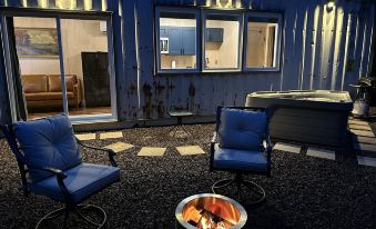 Inside, you’ll find a chic, contemporary space with maple walls, a barn metal ceiling, hardwood floors, designer cabinets, and a 50-inch flat-screen TV with Spectrum service. Stay connected with high-speed WiFi and relax in complete comfort with full climate control, city water, and a spacious bathroom featuring a walk-in shower, toilet, vanity, and washer/dryer. Outside, unwind by the stainless steel fire pit or soak in the hot tub while marveling at the stunning scenery.