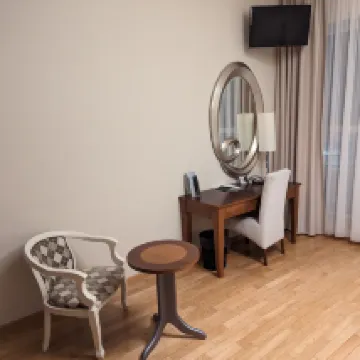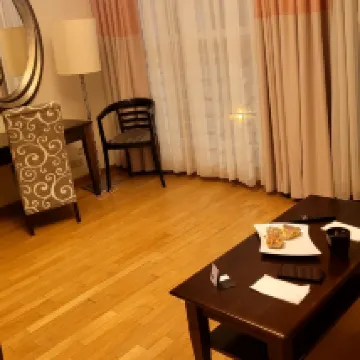 Удобное расположение в самом центре,до всех достопримечательностей шаговая доступность,удобная охраняемая парковка.Номер большой и уютный.Порадовало наличие ванны.Хопоший и вкусный завтрак,все по минимуму и ничего лишнего..остались очень довольны отелем