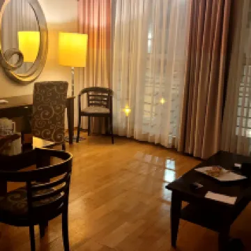Hotel położony jest bardzo blisko centrum, co jest jego dużym atutem. Pokoje są czyste i zadbane, choć miejscami widać, że przydałby się już remont – jednak nie wpływa to znacząco na komfort pobytu.