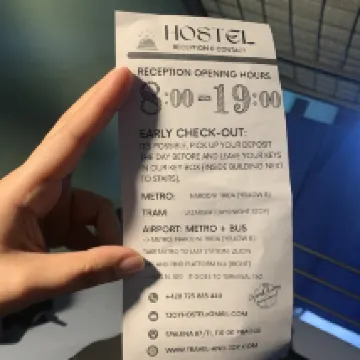 We checked in late at the bar but the bartender was more keen on selling beer and we stood in line at the bar counter for about 10 minutes before he acknowledged us and while locals cut in the line in front of us. It took another 10 minutes for him to hand us the paperwork to check in. I was kind of disappointed because I filled in a pre check in before coming to Prague and the check in paperwork was asking for the details I had filled out online from their online check in sent over email. The bar is not a reception and it clearly says that in the communication sent but it would be nice to have the towels in our room so we could at least shower after a late check in.