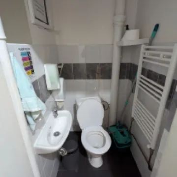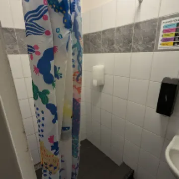 The toilets and bathrooms are shared. There were two toilets in our area labelled as room 1 and room 2 and it is unclear if the hostel had the intention that room 1 toilet be used by room 1 guests but both were left open and were mostly available during our stay. There was one shower on our floor and and it had a large towel warmer and some body wash/shampoo dispenser. We would recommend bringing your own bath products and some flip flops while staying here.