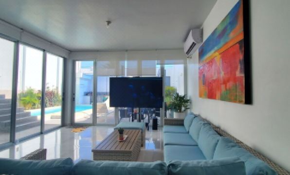 The nearest airport is San Cristóbal Airport, 2 km from the villa.About pets:No pets allowed.About checkOut:Check out before 9:30 AM.About children:Adults only.About checkIn:Check in after 2:30 PM.About smoking:Smoking is not permitted.About minBookingAge:Minimum age to rent: 18.About events:No events allowed.
