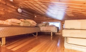 Bedroom with a double bed, living room with a sofa bed and kitchenette; sauna with adjoining dressing room, WC, attic with 3 mattresses. Fireplace, fire woods includes in price. Cosy semi-detached house located at the lake shore, within close vicinity of the ski lifts. Ski tracks and slopes very near. Sharing the beach with the neighbours. Boat includes in price.