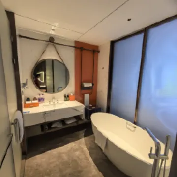 1. The hotel positions itself as relatively high-end, and the price isn't low, but its smart services fall short compared to other hotels. Other hotels use robots for delivering items or food deliveries, and they are very fast. For this hotel, for food deliveries or item retrieval/delivery, I don't know if it's because there aren't enough robots or some other reason, but the efficiency is too low. You always have to wait a long time or proactively call the front desk to get things sent to your room.