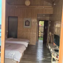 When I went out with my family, there was a small garden in the room where I could barbecue and fish. The room was fully equipped with appliances. The whole scenic area had a beautiful environment, many green plants, and fresh air.