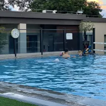 The room was clean and comfortable, and the kids had a lot of fun in the swimming pool. The hot spring water was hot enough, and it was very comfortable to soak in the hot spring after swimming, and you can also have fish therapy. A 50 yuan meal voucher was given, and the restaurant food was good. Unfortunately, the air conditioner fan outside the room was too loud, and the floor-to-ceiling windows on the balcony were not soundproof, so it felt a bit noisy when sleeping at night.