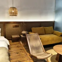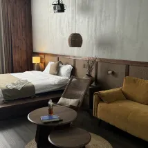 Right after entering, I noticed the complimentary snacks, which were a welcome treat perfect for my late-night hunger. The entire room boasted a charming wooden aesthetic, complete with a lounge chair and a tea-making area, making for a very comfortable and relaxing stay. The communal lounge area just outside the room is a fantastic photo spot (it's very picturesque, and I ended up taking my social media pictures here because it was too hot outside). Plus, convenient parking is available downstairs.