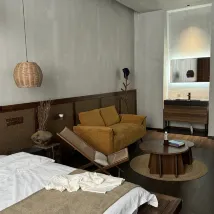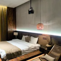 ✔️ The industrial-chic entrance has incredible character, and stepping through the door reveals warm, natural wood-themed rooms.🛏️ Soft pendant lighting, plush bedding, and thoughtful amenities make you want to just settle in and never leave.