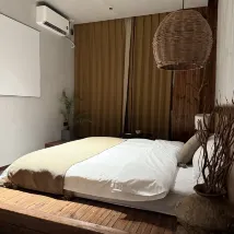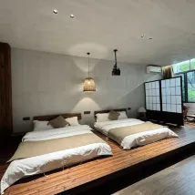 Honestly, I never expected this to be the best night's stay I had in Quanzhou! It offers free parking and is conveniently located. Our two families booked a two-bedroom unit with a living room. The rooms were bright and styled in a lovely Japanese aesthetic. What truly made it special was the spacious common area where we could unwind, have drinks, and chat with friends in the evening – it was such a delightful and relaxing experience! I absolutely loved both Quanzhou and this guesthouse. A definite five-star stay!