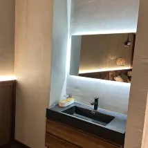 The hotel features a beautiful modern Chinese aesthetic. They offer a free gym, convenient parking, and complimentary afternoon tea in the lobby. The comfort was so exceptional, I honestly didn't want to check out! The room's warm lighting created a very cozy atmosphere. The tatami sleeping area was incredibly comfortable – I fell asleep instantly. All the disposable amenities were spotless, which I really appreciated. I absolutely loved the wet/dry separation in the bathroom. To top it off, they even provided some delicious Minnan pastries.