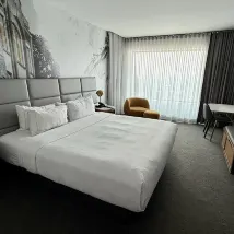 A single issue can significantly detract from the overall experience, overshadowing the hotel's positive attributes, such as its location and the city's appeal. The room's cleanliness did not meet the standards expected of a five-star establishment. Despite presumed cleaning efforts, the room exhibited persistent uncleanliness. Evidence of this is readily apparent; for example, personal items left on surfaces, such as an iPad, mobile device, or dark-colored clothing, quickly accumulated dust or grime. Photographic evidence further substantiates this claim. Upon departure after a two-night stay, we attempted to address this concern with the reception. However, instead of offering an apology, the staff questioned our delay in reporting the issue and offered a complimentary coffee as compensation. How funny.